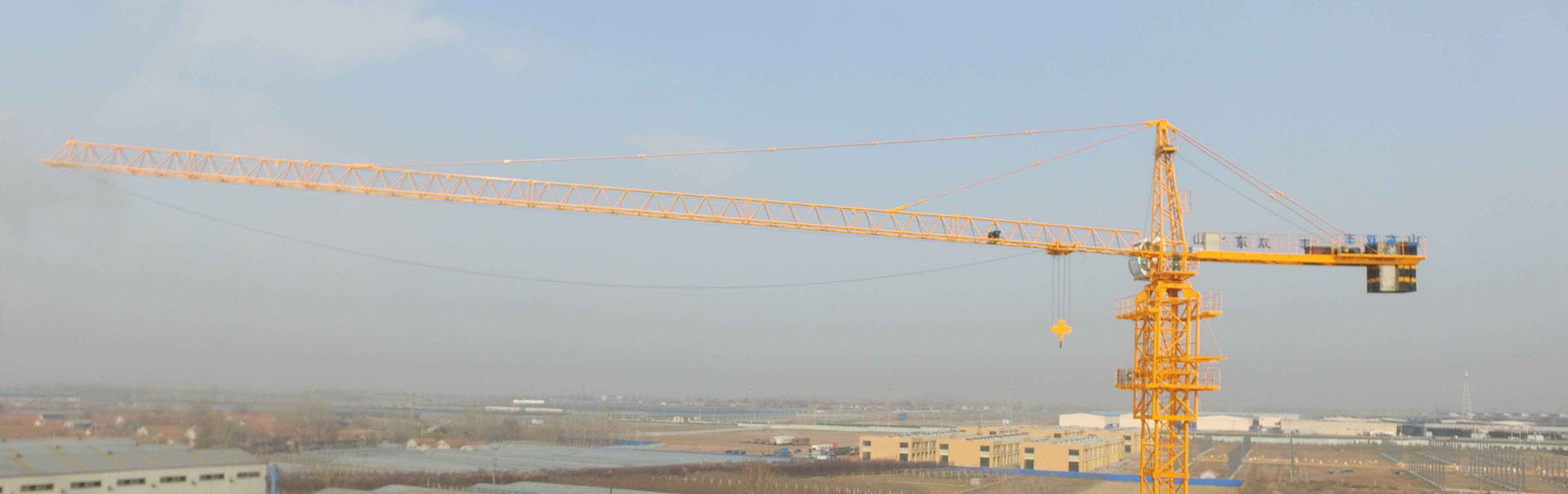 該機為平頭水平臂架、小車(chē)變幅、上回轉液壓頂升式起重機。最大起重量為6t;最大工作幅度為55米,額定起重力矩為:630KN.m.